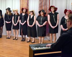 Zespół wokalny „Na obcasach” powstał z inicjatywy dyrektora Gminnego Ośrodka Kultury w Kuryłówce Leszka Połcia w październiku 2019 roku. Impulsem do jego założenia był zbliżający się koncert z okazji Narodowego Święta Niepodległości „Ojczyzno ma” w dniu 11 listopada. Prowadzenie zespołu zostało powierzone pracownikowi GOK Dawidowi Socha. Podczas pierwszego koncertu grupa liczyła 17 osób z terenu Gminy Kuryłówka, które zostały zaproszone do działalności kulturalnej. Od samego początku panie bardzo chętnie uczestniczyły w próbach i koncertach. Niestety wiosną 2020 roku wybuchła pandemia Covid-19 i działalność zespołu została nieco ograniczona. Zespół podobnie jak cały ośrodek musiał przenieść swoją działalność do Internetu. Okazało się, że to żaden problem, tak powstały „teledyski” pastorałka Pastuszkowie bracia mili, wykonana wspólnie z chórem męskim oraz Nikodem w towarzystwie kapeli „Wiemy o co chodzi”.